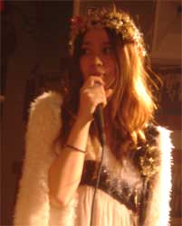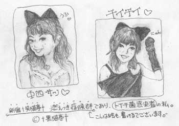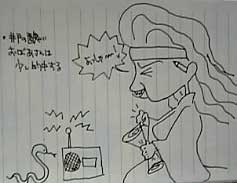 ![]() 歌声といい、ルックスといい、オイラ好み、、、。 もう完璧に惚れました。彼女はオイラの崇高なる女神です。 ほら、よく見ると彼女 ![]() 後光が差してます。 そう、彼女は、 心貧しきオイラに愛をお与え下さる為に天から舞い降りたのです。 やべぇ・・・かわいいなぁ・・・こんな可愛い子久々だよホント。 あまりのスキトキメトキスに萌えあがれガンダム状態のオイラ。 ハッと気づくと、横に座っていた中西ひふみが、 ←平常時オイラをアホ扱いするこの目。 ほっといてくれ! オイラは元々、カメコ体質なんだ。(カメコ=カメラ小僧の略) 昔は浅香唯の追っかけやってたんだよ! 中学時代 おっと、いけねぇ、次は華奈ちゃんだ。 我に返り、早速カメラを構えてみるが。 ![]() HITOちゃん撮影に労力を使いきったせいか、オイラの写真技術が悪いせいか、 お見せ出来る写真がコレ一枚位しか存在しなかった。。 なんでアタシの写真少ないのよ!! と半殺しに遭い、東京湾に沈められると怖かったので、華奈ちゃんの動画を撮っておいた。(決して手抜きではない) *服部華奈ちゃん『君といつまでも』を熱唱 (動画保管庫へジャンプ) お世辞抜きで華奈ちゃんの歌声は力強く、そして人の心を揺り動かすパワーがあった。 三人目(ラスト)のGAANEさんの歌が始まる時、事件は起こった。 カメラ、電池切れ。 電源を何度もON・OFFを繰り返し何とかして奇跡的に撮れた1枚がこれ。 ![]() 申し訳ない 本当に申し訳ないので、GAANEさんの曲が視聴出来るサイトを御紹介させて頂く。 water moonレコード 東京音楽HP(HITOちゃんも聴けます) 是非聴いてみてください。(でないと殺されるオイラ) ライヴも無事終了し、オイラは大満足で会場を出ようとする。 なんと出口付近には、天使のような笑顔のHITOちゃんが立っている。 当然小心者のオイラは声をかける事が出来ない。 すると中西ひふみ、オイラを指差し、 『この人がお話があるそうです』 とHITOちゃんに余計な事を言う。 『テメ糞馬鹿アホコンニャロメ』 とオイラは心の中で中西ひふみを残虐リンチした。 しかし時既に遅し、HITOちゃんはオイラからの言葉を待っている。 予想もしなかったひふみの行動に動揺していたオイラは、HITOちゃんにとっさの一言。 『結婚してください。』 なに血迷ってんだよ・・・オイラ、、、。 当然HITOちゃんは、 『ああ、はあ、へへ・・・』 ・・・迷惑がってる。 困った表情で頭をポリポリしているHITOちゃんの左手薬指に光っていた、愛のしるしを オイラは見逃さなかった。 片想ひ番付、堂々のランクイン決定です。 山田とゐち30歳、未だ止まないアイドルヲタク根性の持ち主です。 以上です。 お疲れ様でした。 ▲戻る |