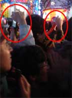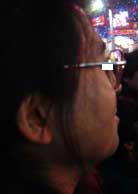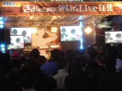 このメガネ率の高さ!! みなさんの笑顔、とっても素敵です☆ オイラの周りを見渡しただけでもこれだけのメガネな方と遭遇しました。 まさに進学校の学園祭状態。 そういえば独りで観に来てる人多かったです。 山田とゐち、30歳、男性、メガネ着用。 この皆様と同様、独りで行きました。 _| ̄|○ ガクッ ええ、だからこの人達をバカにしてるワケでも何でもないんです。 最近笑ってないんです! 笑える事なんてないんです! 良いじゃないか! 独りで観に来て、独りで笑って何が悪い! 孤独バンザイだコンチクショー!! (逆ギレ) このゲームのメインテーマを歌っている『スーパーラバーズ』が登場すると、 ![]() 運動会のパパさん状態。 そしてオイラも負けじと、 パパさんしてきました。(wmvファイル2.5MB) 腕が疲れたので途中リタイア。 そして、あっという間の15分間ライヴは終了。 寂しがり屋な男どもが『アンコール、アンコール』と黒い雄叫びをあげると、 スーパーラバーズ再登場。(wmvファイル1MB) 最後にみんなで 『 ラヴィ!! 』 を唱和し、友情を誓い合ったのです。(多分) ライヴが完全に終了すると、