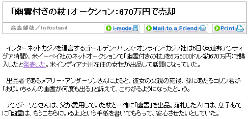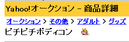 ち… 痴女て。 …どうやらノートパソコンだと難しいみたいですね。 さて、こんな記事を見つけた。 ![]() クリックで記事へジャンプ おじいちゃんの幽霊憑きの杖 6,700,000円 そしてこれ。 ![]() クリックで記事へジャンプ 聖母マリア付きのサンドイッチ 7,000,000円 凄いですね… 何でもありですね。 でも自分ではゴミやガラクタだと思う物が、他人にとっては宝物となりうるという事だ。 特に「○○付き○○」というのが、結構な高値で売れたりする傾向がある。 皆さんの周りに「○○付き○○」なお宝が潜んでいるかも!? 例えばこんなものはありませんか? ・サイン入り矢田亜希子(本人) ・矢田亜希子の口紅付きマグカップ付き矢田亜希子 ・矢田亜希子の生写真付き生矢田亜希子 (早口言葉みたい) ・DVD録画機能付き矢田亜希子 ・矢田亜希子付き矢田亜希子 これら全て ![]() ![]() 【画像提供】 森川君 (*´゚ё゚) … 日本にもこんな「○○付き○○」な高額落札が予想される出品物があるかもしれない。 探してみた所、早速発見!! ![]() ピ、、 ピティ ピティ ボディコン!! (ムハー 『 青春時代がジュリアナ世代 』な山田とゐち30歳としては、 ピチピチボディコンはまさに 青春のシンボル。 説明文をみると… ![]() 黒に金ラメ使用済み!! つまり先ほどの話でいくと 『この人の匂い付きピチピチボディコン』という訳だ。 これは高額で落札されるかもしれない。 が、 ![]() …。 ボディコンがピチピチしてるのは アンタがムチムチしてるせいですからっ!! 以上です。 お疲れ様でした。 ▲戻る | |||||