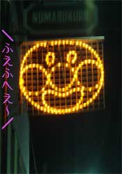 そう言われると、、 ![]() そんな気がする・・・ オイラはてっきり 『 ぼこ殴りにされ、瞳孔の開いた死にぞこないのミッキー 』 もしくは、 ![]() ハクション大魔王 このどちらかと思っていたが、春花さんの言う通りプーさんの可能性も高い。 しかし、この電飾は、 ![]() 耳がでかい。 大きな耳はミッキーのトレードマークであると言っても過言ではない。 でも、 ![]() この顔の輪郭は、どうみてもミッキーのものではない。 どちらかと言えば、プーさんに近いものがある。 もしかして、、 沼袋商店街は、著作権侵害を恐れ、 + =![]() ミッキーとプーさんを合体させてあの電飾を制作し、 『 これはオリジナルキャラだ 』 と言い張ってるのではないだろうか? ・・・名づけて、 ![]() ぬま ぶくろ 沼袋フュージョン *フュージョンが分からない方はクリック そうなると、他の電飾も話が変わってくる。 ( 他の電飾については、1月23日からの日記を御覧下さい。 ) ムカデ + カニ = ![]() ムカニ 口裂け女 + =![]() クチサッキー + ×覚醒剤中毒=![]() ラリえもん + =![]() アンパンマン ( 名前変わらず (*´゚ё゚) … この沼袋商店街、 著作権からうまく逃げてます。 春花さんのメールの続き。