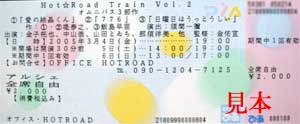 今の会社に入社して早5年。 初めて先輩より早く会社に到着したよ!! 新人の頃から重役出勤の山田とゐちです。 こんにちは。 今日はお稽古がおやすみでした。 ■ お知らせ HOTROAD☆TRAIN Vol.2 『 とゐち通信特別オンラインチケット申込みページ 』 完成しました! 何が特別かって ![]() これがもらえる ただそれだけです 。。 ![]() 申込みページにジャンプ それから、 『 オイラのギャラをスマトラ沖地震に全額寄付する 』 公約ページも作りました。 多くの方にオイラのお芝居を御覧頂き、ついでにその売上を募金しちゃおうというこの企画。 これはオイラが英雄になる企画ではありません。 皆様にチケットを買って頂いてそれを寄付する訳ですから、英雄になるのは皆様の方です。 今回好評ならば、次回以降も続けていきたいと思っています。 ちなみに募金先は 『 日本ユニセフ協会 』 にさせて頂きました。 ![]() 公約ページにジャンプ なお、チケットのお申込みは2月18日からとしていますが、既にお申込み可能です。 購入のご案内ページをよく読んで頂き、一枚でも多くのチケットを買って頂けると嬉しいです! 今回も自由席なので、特に慌ててチケットを購入する必要はございませんが、 土曜日の夜公演、日曜日の昼公演は満席が予想されますので、 そちらをご希望の場合は早めに申し込んで頂いた方が良いかもしれません。 ![]() 申込みページにジャンプ チラシが欲しいとメール下さった方、ありがとうございます。 今日作成して明日発送するつもりでしたが、時間が無くなってしまいました。。 明日か明後日位に時間を作って宛名書きして発送したいと思います。 もうしばらくお待ち下さい! まだまだチラシは沢山あります。 当然、送料はこちらで負担致しますのでお気軽にメール下さいね! 100,000HIT記念企画チケットプレゼントの抽選致しました! 沢山のご応募本当にありがとうございました! 残念ながらハズレてしまった皆様、本当に申し訳ございません。。 次回もまた企画致します。 どうぞご期待下さい! 公演情報 のスタッフ一覧を更新しました。 どうぞ御覧下さい! 今日はお知らせのみでスミマセン… 以上です。 お疲れ様でした。 ▲戻る |