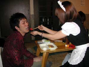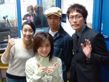 たまに 『 ジョワッ 』 ってウルトラマンの声みたいなクシャミしてる人いるよね。 山田とゐちです。 こんにちは。 ■ オフ会のお知らせ 以前こちらで軽く告知したような気がするんですが、 2005年6月4日 ( 土 ) 第一回とゐち通信&100%俺っぷり合同オフ会 『 とゐち菌は虫歯なんかに負けないぞ! 』 ( このタイトル、ボツ ) を開催したいと思います。 そう、今回は俺っぷりさんと合同でオフ会を開催します。 合同と言っても、俺っぷりシートととゐち通信シートと別々で席を設ける予定です。 どちらのサイトもお好きな方は、席を行ったり来たりして楽しんでください。 それから土曜夜公演を御覧頂いた後にそのまま呑み屋に移動するという形式にしますが、 お芝居を観なくても当然気軽に参加できます! ただ、お芝居が終了するのが恐らく21時半位になってしまいますので、 オフ会は21時45分頃から始めたいと思っています。 会場は池袋・東京芸術劇場のすぐ近くの居酒屋を予定しています。 場所は参加者のみにメールでお伝えする事に致します。 会費はおひとり様2,500円 オイラを含め、今回の公演の出演者も何人か参加します! しかし役者連中は次の日も公演がある為、この1次会で消えてしまいます。 よって、2時間弱の参加となってしまいますが御了承下さい。 誰が参加するかは後日発表します。 萌神チィチィにも交渉せねば・・・ なお、2次会以降をご希望の方は、俺っぷりオフ会に合流して頂ければと思います。 その他、何か新しい情報が入り次第お知らせします。 とりあえず、この時点で参加希望の方は、 『 オフ会参加希望! 』 とメールを送ってくださいね! 折り返し会場等の詳細を御連絡させて頂きますので、 メールフォームで送られる場合は、必ず返信先のメールアドレスを明記して下さいね。 また、複数名でオフ会参加表明をされる場合は、代表者の方がメールを送って下さい。 その際に参加人数と参加者名 ( ハンドルネーム ) を必ずお知らせ下さい。 【 注意 】 既に掲示板等で参加表明をされている方も、 確認の為にもう一度メールを送ってください。 ■ 俺っぷりラジオ 先週の土曜日に3時間に渡りお付合い頂きました 『 俺っぷり!ラジオ 』 のスタジオ写真が送られてきましたのでご披露します。 ![]() 左から、アイドルTAKAさん、オイラ、黒幕KUNIさん ![]() オイラの嫌いなトマトを無理矢理喰わそうとするゆきのさん この人絶対Sです。 ゆきのさんのブログはこちら ![]() ゆきのさんを撮影してるオイラ ![]() 顔がヤヴァイって!! で、盗れた獲物がこれ↓ ![]() ![]() オイラのオチリにカンチョウするゆきのさん。 この人やっぱりSです。 というワケで、色々トラブル等も多発しましたが、 ![]() 最高に楽しかったです! こうなったら準レギュラーになるぞ! おっと、最後に・・・ ![]() ごちそうさまでした J ( 馬鹿 ) 明日はもう一つのラジオ出演時の写真を掲載します。 以上です。 お疲れさまでした。 ▲戻る |