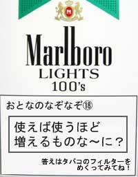 | 2005年07月03日(日) 煙草の害について ( 目指せ100考 B ) |