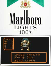 久しぶりに部屋を掃除したんですけど、 コロコロ転がしてホコリ取るやつあるじゃないですか? アレ、無駄なく一本丸ごと使っちゃいました。 相当部屋が汚かったんだなぁと… 何か部屋の空気美味しいし。 山田とゐちです。 こんにちは。 6/27、6/28、7/2の日記の続きです。 【26】 ![]() こたえは 「 借金 」 【27】 ![]() 出会い系サイトの広告が載っている 【28】 ![]() くさったしたいに殺された! ( これ作るのすげー時間かかったよ… ) 【29】 ![]() ギャラクシアンの裏技が書いてある。 【30】 ![]() ん? 【31】 ![]() 【30】を火であぶると宝の地図が出てくる。 【32】 ![]() タバコじゃなくてバタコだ。 【33】 ![]() シールをめくって2000円が当たる! でもそのシールが何者かによって既にめくられている ( 多分主婦の仕業 ) 【34】 ![]() NOVA タバコ留学始まる! 【35】 ![]() 愛・地球博モデル もうネタが尽きました… てか 最初からイッパイイッパイでした。 ( 懺悔 ) 以上です。 お疲れさまでした。 ▲戻る |