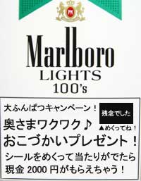 ありそうで見かけない職業。 カリスマ美容師 ( 無免許 ) 昔、一度だけ見たような… 山田とゐちです。 こんにちは。 6月27日と28日の日記の続きです。 【16】 ![]() 間違った注意書きがされている 【17】 ![]() なんかマズそう 【18】 ![]() 洗えば繰り返し吸える 【19】 ![]() コインで削るところがある 【20】 ![]() 途中でハズレと分かり削るのを止めている 【21】 ![]() 実はシケモクだ 【22】 ![]() こんなの吸えない 【23】 ![]() インテル入ってる 【24】 ![]() サラリーマン川柳がついている 【25】 ![]() 杉田かおる推奨! 今日は簡単でスミマセン… 以上です。 お疲れさまでした。 ▲戻る |