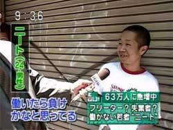 ![]() クリックで参照サイトへジャンプ そう、ニートという言葉が世に出始めたのは、恐らく今年に入ってからだ。 現代の働こうとしない若者達のことを示す言葉だ。 しかし、今回逮捕された男は既に55歳。 そして、19歳の頃から 『 働きたくない 』 という理由で一度も就職経験がない。 そう、 つまりニート歴36年の彼は、 時代の最先端をゆく キング・オブ・ニートだったのだ! ![]() ![]() (*´゚ё゚) … 今更ニートネタをやっているオイラも負けかなと思っている。 スミマセン… 昨日は一睡もしてないもので、、、。 ( 言い訳 ) =3 ( 逃以上です。 お疲れさまでした。 ▲戻る | ||||