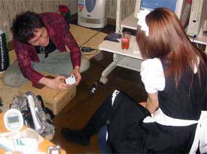 この質問、実は度々色んな方から頂きます。 えっとですね、オイラは常にデジカメを持ち歩いています。 デジカメはシャッター音が出ない設定にも出来ますし、 暗い場所でもフラッシュ無しで綺麗に撮影する事が出来ます。 ![]() 実際これを撮影した場所はかなり暗かったです スリッパ等の画像は、ズームで撮影した後、 フォトショップという画像加工ソフトで編集しています。 ![]() 山田とゐちの撮影風景 ちなみに、オイラのカメラは、 ![]() ソニー サイバーショットT11 発売当時ソニーの中では一番薄型で、動画も撮れる高性能高画質のデジカメでした。 これならスーツのポケットに入る!って思い、即買いしたんです。 ただ、あえて難点を挙げるならば、 ソニー製品は手ぶれ補正がないので、慌てて撮るといつもブレる。 レンズカバーが付いていないのでソフトケースに入れて持ち歩いている。 って感じでしょうか。 その後の機種からはレンズカバーが付くようになりましたし、 どうやら最近手ぶれ補正機能の付いたカメラが出たようです。 もうちょっと我慢すれば良かった… 新しいデジカメ欲しい… さらにAmiさんからこんなコメントも。