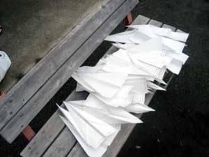 何かまた腰痛いっす… 使ってないのに 山田とゐちです。 こんにちは。 9月20日と21日の日記で告知して、沢山の応募を頂いた キリ番プレゼントの抽選をやりました。 ![]() オイラが直接当選者の所に日帰りで出向き、 24時間とゐち通信で作成した、迷惑なエヴァンゲリオンパズルを差し上げつつ、 シークレットオフ会をしちゃおうというこの企画。 ちなみに今回、有効応募総数は54通でした。 地域別で見てみますと、 北海道 (4) 青森 (1) 山形 (2) 秋田 (1) 宮城 (2) 茨城 (1) 千葉 (3) 埼玉 (1) 東京 (8) 富山 (1) 長野 (1) 静岡 (2) 愛知 (5) 岐阜 (1) 滋賀 (1) 京都 (2) 兵庫 (1) 大阪 (3) 広島 (2) 山口 (1) 愛媛 (1) 福岡 (3) 熊本 (1) アメリカ (1) フランス (1) 不明 (4) 果たして、、 一体誰がこの迷惑をこうむる事になったのか ![]() 送って頂いた応募メールを全てプリントアウトし、飛行機を作ってみた。 思いのほか結構な量になった… これを一度に投げると時間がかかる。 それを動画撮影するとかなり容量になる可能性が高い。 そこでオイラは考えた。 この54通を3つに分け 『 予選 』 を開催する。 それぞれ通過した3人のメールを 『 決勝 』 という形でもう一度飛ばし、決定する。 ![]() というワケで、早速公園に移動。 今日はまず予選第一組の模様を御覧頂きたいと思います。 ![]() ![]() ![]() いい歳こいたおっさんが紙飛行機を飛ばしてるよ、、。 ええ、子どもが遊びたそうに入り口で待ってましたよ… しかしそんなのは構わず、まるでジャイアンの如く公園を独占して飛行機を飛ばし続けました。 その結果… ![]() この紙飛行機が予選突破! ![]() さて、突破したのは!? 予選第一組の模様、及び結果はムービーを御覧下さい! ◆ ムービーはこちら ( 時間:60秒/容量:2.6MB ) 明日は予選第二組、三組の模様をお伝えします。 以上です。 お疲れさまでした。 ▲戻る |