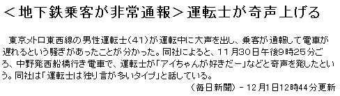 ![]() 実はですね、 これは単なるネタでして、実際は捨てておりません。 今も普通に部屋に転がっております。 うん、やっぱりニ千数百円も投資してやっとゲットしたものですもんね… 捨てるのはどうも勿体無いです。 『 デビルマン 〜不動を待ちながら〜 』 にご来場下さった とゐち通信読者の方へプレゼントする事も考えました。 うん、、でもさ、 ![]() ![]() ホントに欲しい? これから日記でUFOキャッチャーネタをちょこちょこ出していきますので、 欲しい商品があったらメールください。 反響があれば毎度のような観劇プレゼント ( 終演後ロビーで手渡し ) にするかもしれません。 でももしかしたら弟の娘サーヤにあげちゃうかも、、 ![]() 弟から略奪する、その日のために。 略奪プロジェクトはこちら サーヤは随分大きくなったそうです。 立って歩くようになったそうです。 今度会えるのは来年5月かな。 以上です。 お疲れさまでした。 ▲戻る | |||||||||