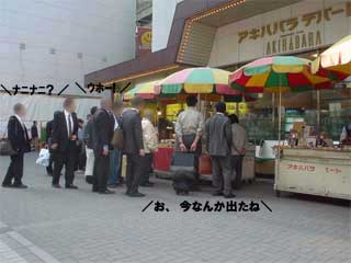 マッチョ売りの少女。 ( かなりの凄腕 ) 山田とゐちです。 こんにちは。 秋葉原に行くと必ず立ち止まって観てしまうのが、 駅前でやっている実演販売である。 ![]() テレビショッピングでもお馴染みの 『 良く切れる包丁 』 などを実際に使いながら、 笑い要素の含まれた巧妙な話術で通行人達の足を止めている。 オイラは実演販売しているおじさんのトークを聞くのが上京した頃から大好きだった。 別に欲しくもないのだがついつい真剣に聞き入ってしまう。 そう、これは紛れもなく秋葉原の 『 文化 』 なのだ。 が。 ![]() 実演販売を遠巻きに見てみると、 なんと、聞き入ってるお客は全員中年男性。 何故だ… 秋葉原という街は、中年男性だけが集う場所ではないはずだ。 いや、むしろ秋葉原は若い男子の方が多いはず。 なのに何故、ここにはスーツ姿のおっさんしか集まっていないのだろう!? というか、このままではヤバいのでは…!? 年配の方ばかりをターゲットにしていては、 これからの若者には受け入れられず、 実演販売が消滅しかねない ![]() 問題は恐らく商品だ。 包丁や靴磨きクリームなど、正直言って若者は興味を示さない。 という事は、若者も注目するような 『 商品 』 を紹介すればいいのだ。 いや、、、 若者だけではなく、お年よりまで幅広く注目される商品ならば、 実演販売という文化は永遠にこの秋葉原で生き残っていくはず。 ― そ う か ! ― 世の男が世代に関係なく飛びつく、そんな商品… それは、、、 ![]() アダルトグッズの実演販売!!!! いける… これならいけるぞ… ( 別の意味でも ) ![]() ― まさに今、新しいアキバ文化が誕生したのだ ― そしてオイラは、 実演販売という 『 アキバの伝統文化 』 を救うことに成功した。 しかし、山田とゐち自身は 『 救いようのないバカ 』 だと判明した。 ( それは全員 了承済み ) 以上です。 お疲れさまでした。 ▲戻る |