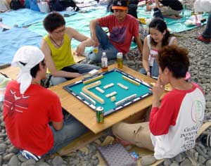 先日、とゐち通信ブログ 『 闇 〜 darkness 〜 』にてお話させて頂いた、 オイラの会社の机の一部。 ![]() 左に書類の山、灰皿からは灰がこぼれ落ち、名刺が散乱している。 飲み終えたペットボトルは放置のまま。 ちなみに自宅もこんな感じです! ( 自慢にも何にもならない ) 山田とゐちです。 こんにちは。 今日はオイラが現在所属している劇団、 HOTROADのバーベキュー大会でした。 ![]() 個人的にわざわざ暑い所に行き、自らがセッティングして、調理して、後片付けをして、 しかも大勢で飲むというのはオイラは嫌いなので、バーベキューというのは避けておりました。 しかし、 ![]() 青空麻雀。 これだけは一度やってみたかった。 健康的なアウトドアイベントで、不健康な麻雀をするという矛盾。 この馬鹿馬鹿しさに、周囲 ( 他の利用者 ) の目は凍り付いていました。 『 役者は見られてナンボ。 』 そんな無茶苦茶な言い訳をしつつ、結局東風戦5回。 オイラの結果はトップ4回、2位1回、4位1回。 総合でトップでした。 ![]() こんなにツイてるオイラ初めてかも… 汚い野郎どもの話はおいといて、、、。 オイラ達が黙々と麻雀を愉しむころ、 こちらも黙々と手呂内さんがバーベキュー番長として料理してくれてました。 ![]() オイラ達はなんて人任せな奴等なんだろう。。 てか、この手呂内さん。 作るだけ作っておいて、自分自身は全く食べてません。 彼は舞台本番中も、菓子パン一個で済ませてしまうウサギレベルの食事量なんです。 舞台はかなり体力の使うもの。 一体、どこからその体力が湧き出てくるのか分かりません。 ― そしてそれを、喰う専門の人々 ― ![]() 肉食獣 服部華奈 写真右の徳秀樹は指をくわえて見つめるだけ… そして、喰うと言えば、、 ![]() おまっとさんでした♪ 米食獣 中西ひふみ それでは 『 おにぎりを喰らう中西ひふみ 』 3連発でどうぞ。 ![]() 喰う! ![]() 喰う!! ![]() 喰う!!! てか、三枚目の写真、、 ![]() 美浦のんちゃんまでもが 『 わあ!! 』 って! この彼女のリアクションのお陰で、 中西ひふみの食いっぷりの凄さが見事に伝わった気がする。 そんな中西ひふみに、 ![]() インリン・オブ・ジョ… 以前このネタを2日連続でやった際、 中西ひふみにこっぴどく怒られた為、 中断。 ( 以前のものはこちら ) 最後に、 ![]() 酒豪 戸田佳世子&桜庭あつこ てか、戸田佳世子の手が、、 ![]() 桜庭さんのチchあqすぇdrfgtyふじこlp;@:!!! オイラの下半身に存在するジョイスティックが… レッドゾーン突入!! ( DANGER!! )![]() やあ、、大砲付きの亀さん、、こんにちは。。 すると突然、桜庭さんが、 ![]() 『 ねぇねぇ、この間こんなに日焼けしたんだよ! 』 と、 生足をオイラだけに特別披露!! 。ρ。 ァゥァゥ… ナマアシ… ρ  ̄ ̄ ̄ ̄∨ ̄ ̄ ̄ ̄ ̄ m C|.| /⌒⌒⌒ヽ/~ ̄ ̄ ̄ ̄ヽ /⌒ヽ⌒ヽ___ | ∴ヽ 3 ) ./ _ ゝ___)(9 (` ´) ) / 丿ヽ___,.───|彡ヽ ―◎-◎-| _/ ) ( Y ̄ ̄ ̄ ̄) (__/ \____/ 更にこの後、 ![]() ![]() ![]() 何してんだよ、戸田佳世子! ![]() 山田とゐち、昇天。 こ、、こんなに 以上です。 お疲れさまでした。 ▲戻る |