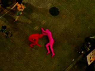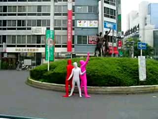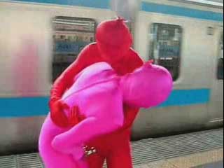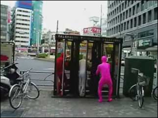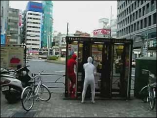 いよいよこの日がやってきた。 我がとゐち通信と 『 100%俺っぷり! 』 によるコラボレーション新企画。 その名も、 没個性三兄弟。 100%俺っぷり!の看板企画 『 没個性兄弟 』 の横槍記事?を書かせて頂く事になった。 というのも、前々から世間を騒がせている没個性兄弟レッド、ホワイトに加わり、 実は新たにピンクが参入する事になったのだ。 今日はそのピンクの初出動も加えて御紹介させて頂きたい。 能書きや薀蓄はおいといて、早速本題に入りたいと思う。 ■ 2005年5月15日 午前6時 池袋駅西口付近 ![]() そこには三機の公衆電話がひっそりと佇んでいた。 携帯電話が主流となった今、公衆電話使用率は下がる一方。 そんな寂しくそびえ立つ公衆電話三台を観て我々はこう思う。 浮 い て る こいつらも没個性だよな… だよな… だよな… だよな… 普段誰もが目も向けず通り過ぎているこの公衆電話に、 今この瞬間だけでも日の目を浴びせたい。 そして三人がコイツらに熱いエールを送ろうではないか。 そう考えた。 ![]() まずはレッド登場。 鍛えられた肉体美、そして素早い動きでスムーズに公衆電話へピットイン。 流石数々の試練を乗り越えただけはあり、堂々としている。 ![]() 続いてホワイト 体力消耗を極力抑えた 『 省エネピットイン 』 先のことを考えバランスの良い鮮やかな入り方だ。 ![]() そしていよいよピンクの登場だ! (*´゚ё゚) ・・・ なんだこの不恰好な入り方は・・・ しかも ![]() 尻がでかい。 そうか、、全身タイツは体のラインがくっきり出る為、 少しでもトレーニングを怠るとひと目でそれがバレてしまうのだ。 ダイエットせねば。 3人が電話ボックスに入り、ひたすらプッシュボタンを連打し始める。 すると・・・ ![]() ![]() ![]() 誰か近寄ってきたー!! しかもこの構え、 カメラ持参。 三人はこれらの公衆電話へ人目を惹きつける事に成功したのだ。 ![]() そして最後の任務 『 公衆電話に熱いエール 』 三人は同時に公衆電話から飛び出る。 しかし、ここでもベテランとルーキーに差が出てしまう事に・・・。 ![]() 画像をよく御覧頂きたい。 レッド・ホワイトがほぼ同時に飛び出ているのに対し、 ピンクがほんの0コンマ数秒遅れている。 この二人、 ![]() 超人的レベルな息の合い様 果たしてピンクは、これからこの二人についていけるのだろうか!? ![]() 三人は手を合わせる。 が、、ベテラン二人はしっかり腰が入っているのに対し、 ピンクはまるでやる気の無いかのような構え。 そして三人で声を合わせて公衆電話へのエール 『 FIGHT! ( ファイ! ) 』 ![]() 見よ! レッドのこの気合の入った角度を!! 勝手に名づけて 『 フェニックスジャンプ 』 レッドの公衆電話に対して 『 天高く舞い上がれ 』 という熱い思いが伝わる見事なポーズ。 公衆電話もさぞ喜んだことだろう… ( しんみり ) ![]() そして三人は何事も無かったかのようにその場を去るのだった。 ピンク、スタートダッシュに遅れる。 そして、尻がでかい。 まだまだ修行が足りん… 公衆電話を公衆の面前に晒す事に成功した 動画はこちら ( とゐち通信動画倉庫へ ) 最後に、、 ![]() 地味に動画チェック・・・ 以上です。 お疲れさまでした。 ▲戻る |