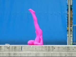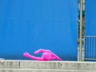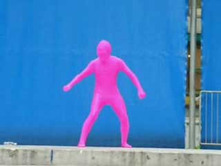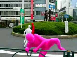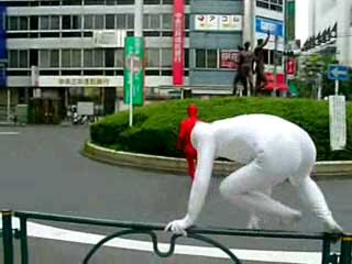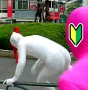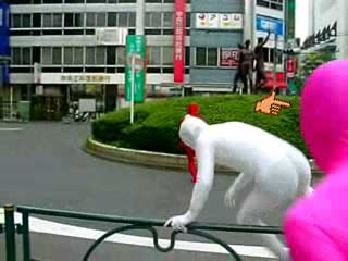 ■ 池袋駅西口付近 ![]() 池袋駅西口を出てすぐの所に、タクシーやバス等が利用するロータリーがある。 そのロータリーの中央には、小さな離れ小島がぽつんと存在する。 そこになんと、3人の男女が寂しそうに立っているのだ。 ![]() しかも全員全裸 一体、彼等に何があったというのだ!? ![]() もしかしたら彼等は、何らかの事故で漂流してしまい、 このコンクリートの無人島に取り残されてしまったのではないだろうか!? そうか! きっと彼等は、かなり前からこの離れ小島でSOSを出し、 長期間に及び助けを求め続けているのだ。 そのせいで衣服は破れ落ち、こんな哀れな姿で立ち尽くす事しか出来ないに違いない。 しかし、大都会東京。 この3人の救いを求める声は騒音にかき消され、誰も見向きなんてしてくれない。 今こそ、我々が彼等を救わねば 没個性三兄弟出動っ!!! ![]() まずはレッド 鍛え上げた肉体を駆使し、柵を軽々とジャンプ! その姿は雄々しく、かつ、鳥のように華麗に空を舞う。 頭より下半身の方が上にあがっているのは、腕力と跳躍力のある証拠。 さすが、没個性リーダー兼特攻隊長である。 ![]() 続いてホワイト やはりこの後、離れ小島の三人を救う事を計算してか、 いつものように省エネスタイル。 『 忍 』 を思わせる静かなる柵越え。 確かにこの後どんな危険が待ち望んでいるか誰も分からない。 それを警戒しつつ慎重なジャンプはおみご… って、、 ![]() まだホワイトが柵を越えきる前に 邪魔するかの如くピンク登場… あのねぇ… 先輩のホワイトさんがカッコよくジャンプし終わってから登場しようよ… 一応ここは彼の見せ場でもあるんだから… 没個性ピンク 大迷惑な 『 出とちり 』 ■ 出とちり ( 舞台・演劇用語 ) 自分の出番ではないのに誤って出てしまうこと。 また逆に、自分の出番なのに出るのを忘れてしまい進行を妨げること。 ![]() そういうトコ、若葉マーク ( 激しくスマン ) まあ、出とちってしまった事は仕方が無い。 これから挽回し… って… ![]() ダセー!!! まるで、 犬がおしっこしてるみたい…。 _| ̄|○ ガクッ ![]() そういうトコ、若葉マーク ( 鬱 ) しかも、全身タイツ姿だというに、、 ![]() イッパイイッパイになっているのが バレバレなこの表情も若葉マーク ![]() なんとか離れ小島まで辿り着いた没個性三兄弟。 すぐさま全裸で立っている彼等に、同じポーズで存在をアピール。 そして彼等にテレパシーで語りかける。 ![]() 俺たちはここにいるぞ!! 今助けてやるからな!! 早くこっちに来るんだ!! すると、彼等が口を開く ![]() 僕タチハ、ココニイタイ… コノ大都会ノ無人島デ生キ続ケタイ… コレカラモ… ![]() 全裸なのに? 雨降ったら濡れるのに? 鳩のウンコが落ちてくるのに? そんな辛い思いしてないで、早く降りておいでよ。 ![]() ソレガ、、、キモチ、、イイノ… 彼等はあたかもその場所にいるのが当然かの如く、平然とした表情でそう答えた。 …なんだよ、、折角助けてやろうと思ったのに、、、。 逆に我々は怒りを覚えた。 ![]() 同情なんかしてやんないからなぁ〜!! ![]() と、没個性三兄弟は心の中で捨て台詞を吐き、 その場をダッシュで走り去る。 ![]() それにしてもレッドとホワイトは足が速い。 それに比べ、ピンクときたら、、 ![]() 必死で無様 その必死さは、紛れも無く ![]() 若葉マーク ■ 若葉マークなムービーはこちら ( とゐち通信動画倉庫へ ) ( 容量:2.25MB / 時間:25秒 ) 以上です。 お疲れさまでした。 ▲戻る |
