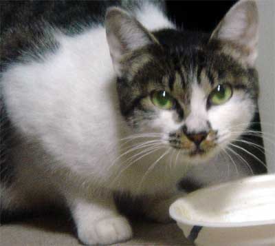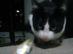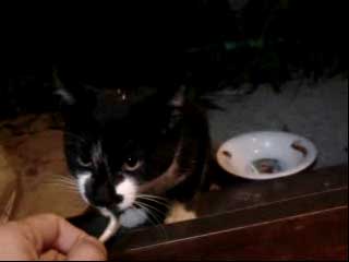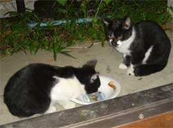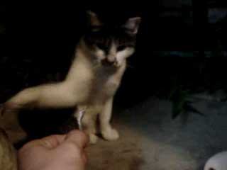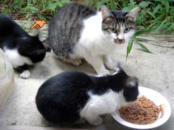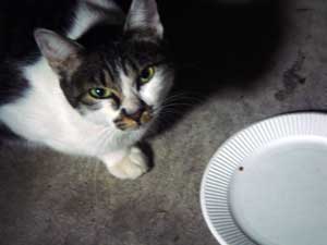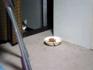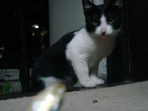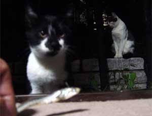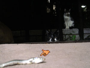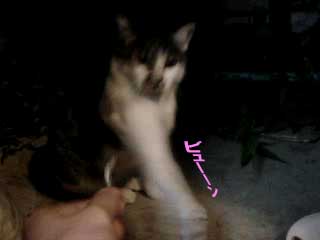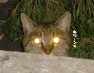 とりあえず、この猫は夜にやってくるので、 撮影はどうしてもフラッシュを使用しないといけない。 しかし、フラッシュを使用すると、 ![]() 物凄く怖い… ![]() そこで、フラッシュを使用しなくても良いように 少し窓を開けて、部屋の中に餌を置いてみた。 でも野良猫って警戒心が強いからこんなんで入ってくるのだろうか… しかし、餌を置いて2時間後… そんなオイラの心配が無意味だったという事が分かった。 ![]() あ。 ![]() ![]() 覗かれてる!! ![]() そしてこっそり餌に近づき… ![]() ![]() あ、目があった。 かわいいなぁ… そぉっとカメラをズームしてパチリ。 ![]() あれ・・・? ![]() この猫、、よぉく見てみると昨日のと違う… 二匹いたのか。。。 さて、これからこの二匹の猫に餌付けして、 どこまでオイラに慣れるか試したいと思います。 進展があり次第、このとゐち通信でお伝えしていきたいと思います。 二匹の名前もちゃんと考えました。 ![]() た し ろ え つ こ 田代 と 悦子 ![]() とゐち通信新シリーズ 『 田代と悦子 』 御期待下さい! 但し、猫が来なくなってしまったらこのシリーズは自然消滅しますが…。 ◆ 募集 ◆ 上手な餌付け方や猫に好かれる方法等をご存知の方、是非御連絡下さい! 以上です。 お疲れさまでした。 ▲戻る |