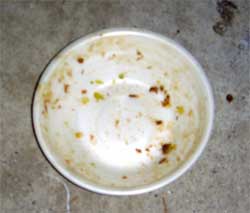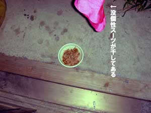 先日の24時間とゐち通信で、 ![]() 24時間とゐち通信の動画より 猫の餌入り納豆を食べようと試みたが、 結局、ニオイがキツくて食べる事が出来ず失敗に終わった。 ![]() ちょっと見た目グロいのでモザイク処理してます オイラは基本的に食べ物を無駄にする事が嫌いな人間なのだが、 こればかりは捨てるしかないかなと思っていた。 が、試しにオイラの家の小さな庭にそれを置いておくと 次の日にはキレイに 『 納豆入りキャラット 』 が無くなっていたのだ。 ![]() 誰かが喰った。 野良猫だろうか? いや、猫が納豆を食べるだろうか? もしかしてホームレス!? ![]() 『 モノは試し 』 ともう一度納豆入りキャラットを作り、 庭に置いてしばらく様子を見ることにした。 すると… ![]() ん? ![]() ![]() 覗かれてる!! やっぱり野良猫が納豆入りキャラットを食べていたのだ。 ![]() 目の前にある納豆入りキャラットが欲しくてしょうがないのだろうが、 オイラが近くにいる為なかなか食べる事が出来ない。 食べる所を撮影したいが、どうやらこのままでは無理のようだ。 というワケで、撮影を断念して、猫が食べ終えるのを待った。 うーむ、うまく撮影出来る方法はないだろうか。 つづく。 以上です。 お疲れさまでした。 ▲戻る |