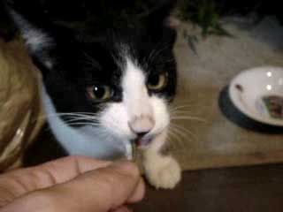 前回の続き。 ![]() 工藤兄弟が我が家に来るようになってから、悦子は餌を食べなくなっている。 なぜならば、母親として子ども達に餌を譲ってしまうからだ。 オイラが家に帰って窓を開けると、いつも悦子だけが窓の外で佇んでいる。 オイラはすぐに皿の上に餌を盛るのだが、悦子はそれを食べずに姿を消してしまう。 そして数分後、子ども達を連れて戻ってきて、その餌を子ども達に食べさせる というのが悦子の行動パターンだ。 つまり悦子は子ども達 ( 工藤兄弟 ) を呼びに隠れ家に戻っているのだろう。 そしてお腹を空かせた子ども達に優先的にご飯を食べさせているのだ。 例えば、悦子の為に餌を差し出しても、子どもがその餌を食べようと割り込んでくる。 普通なら 『 これは私の餌だ! 』 と怒るものだが、 悦子は優しい顔で子どもに餌を譲ってしまう。 母親の鏡だ… ( 感動 ) 恐らく悦子は他の餌場で食べているんだろうが、 きっとそこでも子どもに譲ってしまい、食べる量自体は少ないのではないかと考えられる。 よし、悦子にも煮干しをやろう。 ![]() 工藤兄弟達が他の餌に熱中している隙を見て、 悦子に煮干しを差し出してみる。 しかし悦子は、じぃ〜っと煮干しを見つめているだけ。 『 悦子よ。 お前は本当によく頑張っている。 子どもの為に食べるのを我慢して、見張り役に徹してるその姿、まさに母親の鏡だ。 でも今はいいんだよ。これは子ども為の煮干しじゃない。悦子の煮干しだよ。 さあ、遠慮なく食べるがいい。 』 と心でつぶやきながら更に悦子に煮干しを近づけてみる。 すると… ![]() 一歩前へ近づこうと悦子の右足が軽くあがる。 よぉし…いいぞぉ。 さぁ、食べるんだ。 固く心を閉ざしていた悦子がようやく心を開いたかに見えた。 しかしこの後、 悦子はオイラの期待を裏切る行動に出る。 ![]() え…? ![]() 悦子の強烈な右フック炸裂!!!! しかしオイラは間一髪避ける!! が。 ![]() 粘り強い悦子の連打!!!! 早すぎてパンチが見えねぇ!!! ( この動き、是非ムービーで御覧下さい ) ![]() 痛っ!!!! 見事オイラの指にヒット!!! ついに餌は飛ばされてしまう。 ![]() 強い… アンタ… 強すぎるぜ… ![]() 結局その煮干しを工藤兄弟Aが食べてしまう。 そこまでして子どもに餌をあげたいのか… てか、 オイラと悦子って、 『 ちょっと仲良くなれてるのかな 』 って思ってたケド… 全く心通じてない事が判明しました。 悦子と心通いあう日はいつになるのか… ![]() クリックでムービー起動 悦子の猫パンチ炸裂ムービーはこちら ( 時間:8秒 / 容量:0.4MB ) 以上です。 お疲れさまでした。 ▲戻る |