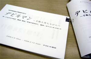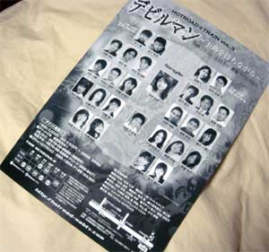 2006年2月9日から14日までの6日間、 アイピットで行われた山田とゐち初プロデュース公演 チケットが早々に完売し、急遽追加公演を行うなどして大成功をおさめた。 早くも多くのお客様から 『 是非、再演して欲しい 』 という声があがり、 将来、再演・地方公演をするという大きな目標も出来た。 一体この舞台裏はどうなっていたのか!? 若手達だけで作り上げた今回の公演の舞台裏をまとめてみました。 アイドルオタク山田とゐちによる 平田裕香の追っかけぶりと共に・・・ |
