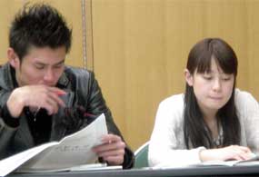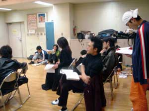 オイラが勤務する会社の社長が、実は姉歯さんに激似だという事は 我が社のトップシークレットです。 どうぞご内密に。 山田とゐちです。 こんにちは。 山田とゐちプロデュース公演 『 デビルマン 』 の顔合わせでした。 ![]() 顔合わせと言えば、、 オイラに課せられた使命は やはり 盗撮。さてさて、今回は一体どんな顔ぶれなのでしょうか。 ![]() ちっちゃくてよくわかんねー!! 今回、ダブルキャストの為、出演者総勢28名+スタッフという 本公演並の人数が集まったのです。 ちなみに中央にあぐらかいて座ってる二人組がいますが、この二人は撮影班の方です。 そう、舞台デビルマンのドキュメンタリーを作って頂こうかなって思いまして、 オーディションから本番までずっとオイラ達を追って貰っているのです。 ![]() 今回演出をお願いした宇治川まさなりさん。 演劇・ミュージカルの世界で大変素晴らしい実績の持ち主。 HOTROADのような無名劇団の仕事を引き受けてくれるのは正直奇跡に近いっす。 今回のオイラの企画意図を気に入って下さって、演出を快諾して下さいました。 間違いなく今回の公演を大成功に導いてくれるだけでなく、 役者個人のレベルアップは確実といって良いと思います。 とにかく尊敬出来るアツい男です。 次に、出演者たちの写真をダーっと御覧下さい。 ![]() ![]() ![]()
