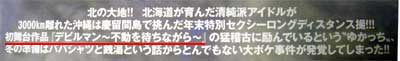 土曜日開催されたオーディションで、 『 私、合格したらとゐちさんの彼女になります! 』 って言ってくれた人、誰もいませんでした。 こっそり同時開催していた 山田とゐち彼女オーディション 応募者ゼロ! 終了。 山田とゐちです。 こんにちは。 ![]() (*´゚ё゚) ん? ![]() ![]() ![]() なんと先週発売の 『 sabra 』 に、平田裕香さんのグラビアが掲載されていたのだ! という事は、、だ、、 『 デビルマン 』 の宣伝もしてくれているはず。 早速購入し、 自宅に帰って平田さんのページを開いてみると、、 ![]() 諸事情によりモザイク加工してあります うはっwwwwwおkkkkwwwwwカワユスwwww ![]() ん? 何か書いてあるぞ!? ![]() ![]() お。 ![]() え… ![]() (*´゚ё゚) ・・・ まだ稽古始まってないやん、、、。 さて… エビちゃん ( 蛯原友里 ) のグラビアでもみよっと… 以上です。 お疲れさまでした。 ▲戻る |