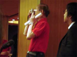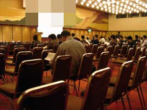 ![]() トム・ハンクス 白 菜 区別つきません。 ![]() 山田とゐちです。 こんにちは。 場内に入場。 ![]() まだ開場したばかりで人は少ない。 早速オイラは最後列の一番端っこに着席する。 ワ ル リザーブシート やっぱり最後列は不良の指定席 この席から全体を眺め優越感にひたるのがワルってもんさ。 ( 馬鹿 ) ![]() 写真を撮ってる人を何人か見かけた。 きっと今日の日記のネタにするんだろう。( 違 オイラもこれに紛れて堂々と撮影し始める。 ![]() テレビ局の報道カメラも来ていた。 今日発表される新製品はそんなに大それたものなのかねぇ… オイラにインタビューしても構わないが、 ギャラが発生するよ? と、ちょっと心の中でカッコつけてみる… ( 意味無し ) てか、馬鹿。 説明会が始まった。 ![]() やっぱりちゃんと説明聞いておかないと、後で社長に報告出来ないから ちょっとだけ中央寄りの席に移動。 ( そういうトコ気が小さい… ) ( 時間経過 ) 説明会終了。 ( 長かったぁ… ) 何を喋ってるのか専門外で全く理解なかった… とりあえず、今日の説明を聞いて理解出来た部分は、 ブラウン管はブラウンさんが発明した物だ。 以上。 _| ̄|○ ガクッ 社長にはどう報告しようか… 場所を移動。 新商品を実際に使ってみたりする時間になる。 ![]() その実演コーナーの横に、コーヒーとミネラルウォーターが用意されている。 勝手に飲んでも良いという事なので、ミネラルウォーターを一本貰っていく。 ![]() それを飲みながら談笑する中年リーマン軍団。 『 新橋のお姉ちゃんがさぁ…ガハハハハ!! 』 と、くだらない事で盛り上がっていた。 サボリーマンはオイラだけではなかった! ![]() 逆に真面目に商品説明を受けている人もいた。 説明してるお姉さん、JJ系でとってもキレイ♪ しかし、このオジサンが暴走し始める。 このキレイなお姉さんが困るような難しい質問をし始めた。 いるんだよねぇ…わざと困らせるような質問をする輩が、、。 ![]() 対応に困ったお姉さんは、上司らしき人を呼びバトンタッチ。 お姉さんはその場から立ち去る。 お姉さんが居なくなったのでオイラも立ち去る。 てか、オイラ。 商品には興味を示さず、 お姉さんばかり観察してました。 だってキレイなんだもん… 会場を出て、マネージャーと会い、そして会社に戻る。 ただいまー。 社長。 あれ? 社長は? 出かけたよ。 そっか。 今日はそのまま戻らないって。 oO( 直帰かよ!! )梅雨。 スーツ姿のサムライ達が悶え苦しむ季節がやってきた。 雨流れる窓から垣間見える空は、どんよりとした雲で覆われていた。 そして、オイラの心も。 以上です。 お疲れさまでした。 ▲戻る |
