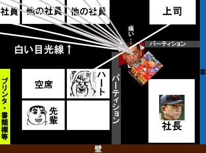 本日20時からラジオ生出演してきます! ( こちら ) 山田とゐちです。 こんにちは。 そう言えば皆さんに、 会社の座席表を御紹介していなかった。 ![]() 社長とオイラはパーティションで区切られてはいるが、これ程までに至近距離。 しかもあのハート様はオイラの正面という、まさに緊迫した座席設定なのだ。 しかしラッキーな事に、オイラの背後は壁で、 隣の先輩が外出してしまえば、ちょっとした漫喫状態を満喫出来る。 ところで一昨日、ようやく会社に今回の本公演の出演の為の休暇願いを提出した。 毎回社長に嫌味な御言葉を頂戴するので、小心者なオイラはいつもこの申請を躊躇する。 そう、オイラにとってこの瞬間は、ある意味公演本番よりも緊張するのだ。 しかしいつまでも申請しないでいるわけにはいかない。 公演情報のメッセージに少し触れた通り、 前に一度軽いジャブ程度に社長には話したが、 正式申請をこれ以上放置して時期を引き延ばすと、 『 何で今頃言うんだ 』 と余計にバツが悪くなる。 よし… 今こそ逝くぞ!! 覚悟を決めたオイラは今回の公演チラシを持って立ち上がり、社長に声をかける。 社長、2〜3分程お話宜しいでしょうか? 何だ? ? ( シュークリームもぐもぐ… )ハート様が食する甘いシュークリームの香りをくぐりぬけ、オイラは社長の席まで移動した。 ![]() 今月末から舞台に出演させて頂きます。 ああ。 これ、チラシです。どうぞ。と、チラシを渡すその時だった。 毎度お馴染みの社員たちからの洗礼 ![]() 白い目光線 そう、毎回この話をする時は、他の社員達から白い目で見られるのはお約束事。 背中に感じる白い目光線が……痛い、、、。 そんな事にもめげず、オイラは社長にチラシを渡す。 ![]() ふーん。 ( タバコぷかぁ〜 ) で?どうするよ。 今月25日から来月5日までお休みします。 わかった。 ふっ… 公演が終わったら給料について話そう。 あ、はい。 ところで、だ。 え? oO( 始まった… ) いつまでやるつもりなんだ?俳優業。 ・・・ oO( ずっとやるつもりですが? ) こんな事やってて金になるのか? な…なりますよ! oO( なりません! )そこへ、ハート様が口を挟む。 へー、幾ら位貰えるの? え? oO( テメ、余計なこと言わずに肉まん喰ってろ… ) 貰えたとしても大して貰えないんでしょ?他の社員達も一斉にオイラを注目する。 えっとね、、うーん oO( クソ…角煮にすんぞ、コラ ) どうなんだ? えっとですね… うん。 一回の公演に約10万位頂いてます。しまった… 本当は10万はおろか、ノルマクリアしなければ マイナスにすらなるというのに… 社長やハート様に負けを認めたくないという気持ちというか、 ノーギャラでやる事に対して馬鹿にされるのを避けたいという気持ちからか、、、 『 もう俳優なんか止めたら? 』 等と社長に絶対言われたくなかったせいもあり、 つい強がって 『 10万位 』 とかって嘘を言ってしまった… へー、そんなに貰えるんだ? すげー。 ( もぐもぐ ) ま、まあね。 そうか、まあ悪くはないな。 ええ、、まあ… じゃあ… はい? 給料減らしても大丈夫だな![]() ![]() そう言い残し、社長はオイラにチラシを返した。 (*´゚ё゚) … 窓際から春の心地よい陽の光が差し込んでいる。 以上です。 お疲れさまでした。 ▲戻る |