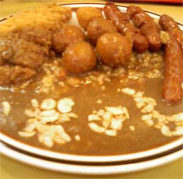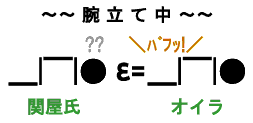 今日はやたらとおならの出る日だった。 前日の稽古終了後の飲み会で殆ど食べる事の出来なかったオイラは、自宅近くの『カレーハウスCOCO壱番屋(通称:ココイチ)』で大量のガーリックチップ(揚げニンニクスライス)の入ったカレーを食した。 それが今日、『ガーリックガス』という名の黄土色の悪臭に進化し、稽古場の空気を汚染していたのだ。 稽古場で臭いと感じた人がいたら、この日は全てオイラの仕業でした!(自供) 実はこの自宅近くのココイチ、偶然にも今回共演する関屋氏のバイト先だったという事が発覚! しかも関屋氏はオイラの自宅から徒歩1分位の所に住んでいた。 まさに『醤油が切れたら借りに行ける距離』とはこの事だ。(オイラは全く自炊しないが) とにかく偶然というものは面白い…ある意味運命を感じた。(照 オイラの行きつけのココイチで関屋氏がバイトをしている事が発覚して以来、そこに行くのが楽しみになった。 『えっと、ポークカレーにソーセージ、うずらの卵フライをトッピングしてライスの量は300グラムでお願いします』 と関屋氏に注文すると・・・ 『ポークカレーにソーセージ、うずらの卵フライ、ロースかつ、ガーリックがトッピングされ、ライスの量は400グラム』 となってオイラのテーブルにやってくる♪ ★★★ 超 豪 華 ★★★ ![]() 左から、ロースカツ、うずらの卵フライ、ソーセージ、 ルーに浮遊している白い物体はガーリックチップ オイラはかつて、こんなにトッピング豊富なカレーを喰った事があっただろうか!? 関屋クン、いつもありがとうっっっっ!!!!!関屋氏の友情に感動し涙する 山田とゐち(右)と関屋氏(左) さて話を戻して、本日のダンスレッスンはカヨコがお休みだった為、サトミの指導で行われた。 カヨコと違い、普段ダンスのインストラクターをしているサトミのウォーミングアップはハードである。 はい、四つん這いになってください!腕立伏せしまーす♪ これが後に、大変な事態になろうとは… 言われたとおり四つん這いになり腕立て伏せを始める。 ワン、ツー、スリー…ばふっ!!! !!!!!_| ̄|○ …しまった、、力みすぎて放屁してしまった。。 だが幸いな事に、稽古場内は大音量の音楽が流れていた為、周りに音は響かなかった。 ホッ… しかしおならというものは、やはり音よりも匂いの方が人間の体に害を及ぼすわけで… ま、まさか…後ろの人に気づかれただろうか?? 腕立てが終了し、ドキドキしながらそおっと後ろを振り返ってみると… 関屋氏がいた!!!!!!!そう、オイラの真後ろで関屋氏が腕立て伏せしていたのだ・・・ 彼は、オイラの『ガーリックガス・ファイアー』を直接顔面に受けた事になる。 ![]() (;´゚ё゚) ・・・ すまん!!!許してくれ!関屋君!!!!涙ながらに懺悔をする山田 とゐち(右) でも、、、仕方ないじゃないか・・・ ![]() 恩を仇で返す男、山田とゐちの稽古と放屁はつづく。 戻る▲ |