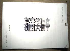 今日、稽古場に到着するや否や、オイラは嬉しい言葉を耳にする。 『えっと、台本が完成しましたので手の空いてる人から取りに来てください』 な、なんですとぉぉ!!!! 首を長くして待ち続けたオイラ達は我先にと本を貰いに駆け寄る。 見よ!この燦然と光り輝く台本を!!! ![]() まず始めに、オイラは最終ページを開いてみる。 何故ならば、ちゃんと終わりまで書かれているかこの目で確認したかったからだ。 …だって、今まで使ってたのは前半部分までの台本だったから。 ![]() ちゃんと終わってるぅ♪ これでストーリーの全貌が明らかに!! 大 満 足 で す ★ というわけで、今日の稽古は原田さんが闘魂込めて書き上げた台本で行われた。 ああ、何だかようやく公演の稽古が始まったって感じして気持ち良い♪ ![]() ( ´゚ё゚) ん? ![]() あ!!!! カァイイって使ってる!! ![]() 9月18日の稽古場日記『ゴジラVSメカゴジラ』より オイラとおそろいだぁ♪(喜 ククク…どうだ、皆の者!これで分かったか! プロの物書きは「かわいい」をカァイイと書くのだ!!! ![]() 鼻高々「天狗状態」の山田とゐち 読み合わせが始まり中間位に差し掛かった頃、突然稽古場の扉が開いた。 あ。 カァイイ愛好家の原田さんだ!!!!!!!![]() お疲れさまああああああああ!!!! それにしても執筆で負った腱鞘炎による腕の包帯が痛々しい。 ![]() 手には痛々しく包帯が! しかし寝る間も惜しんで書いた脚本が、役者によって命を与えられる瞬間を見るというのは、やはり劇作家冥利に尽きるだろう… そう、原田さんは、孤独に『上演台本』という敵と闘い続けた。 だからこそ、今度はオイラ達が彼女の思い描いた通り、若しくはそれを超える芝居をみせる義務がある。 原田さんの見守る中、自然とオイラの演技にも力が入った。 ![]() 読み合わせ稽古を真剣な 眼差しで観ている原田さん ああ!今こうやって日記を書いていて思ったのだが、 まさに原田さんは孤独と闘い続けた矢吹丈だ!! ![]() あ。 『 完 』だ!!!!真っ白な灰になる程燃え尽きた戦士だけに与えられる言葉…それが『完』なのである。 戻る▲ |