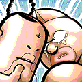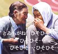 さて、気になるキャスティングの件だが、どうやら演出の金さんは未だに悩んでいるようだ。 本日の稽古で『8割の人のキャスティングは決まりました』と言っていた。 だけど、オイラは分かってるんだ・・・ 残りの2割にオイラが入ってる事を!!!!!!!! そう、金さんは五條(悪役?)という役をオイラにやらせるべきか、他の役にするべきか迷ってる! 間違いない! その五條の人間像というかキャラクター説明をされた時、オイラは是非やりたいと強く思った。 しかし、その役の候補にはオイラ以外にもう一人あがっている。(と勝手に予測している) その一人とは、恐らく杉山氏だ。 クセがありアクの強い芝居をする『ソース味』のオイラに対して、杉山氏の芝居は非常にあっさりしていてナチュラル芝居な『醤油味』だ。 オイラがやるか杉山氏がやるかによって、恐らく芝居全体の印象が変わってくると思う。 どちらが良い悪いという問題ではなくて、やはり役者それぞれの持ち味というのがあり、それを生かすとなるとオイラと杉山氏とでは持ってる物が全く違う為、そういうものが作品全体に影響してくるのだ。 杉山氏は、つい最近まで高知で映画の撮影をしていた為、1週間程稽古を休んでいた。 その映画とは、今大人気の高知競馬の星『ハルウララ』を題材に扱ったものである。 元々杉山氏は俳優・渡瀬恒彦さんの付き人をやっていた人で、今回この映画の主演である渡瀬さんからお声がかかり、めでたく出演する事になったらしい。 強 敵 だ ・ ・ ・ ・ ・ ・ ・ ・ 杉山氏とは年齢も近い為、普段は仲良くお付き合いさせてもらっているが、やはり個人的にはライバルだとオイラは思っている。 今回、ホットロードには二人とも初参加だが、オイラは自分の妄想の中で彼との熱いバトルを繰り広げている。 ![]() 熱いバトルを繰り広げる山田とゐち(左)と 杉山氏(右)【写真は妄想のイメージです】 それにしてもチィチィ(斉藤千春)はカワイイ… カワイイというより、カァイイvv 彼女はダンサーだが、今回芝居にも挑戦する。 芝居は杉山氏同様ナチュラルタイプで、ありのままの自分で演じるタイプだ。 体が細くて、背がちっこくて、『一体どこから声を出してるの?』と言いたくなるようなアニメ声でふわふわぁ〜と言ったような感じの話し方をし、ふらふらぁ〜と言った具合に予測不可能な行動をする、まさに天然純度100%の『不思議ちゃん』である。 しかし、ダンスとなると急に目が輝きだし、機敏な動きで我々を圧倒する。 小さな体でエイッエイッって感じで踊るチィチィに、オイラはいつもハァハァハァハァ…と鼻息が荒くなるのである。 いや、、、鼻息が荒くなってる野郎はオイラだけではないはずだ!!!! 恐らく野郎どもの大半は、あのチィチィの愛くるしい姿に心奪われているに違いない。 ああ、チィチィをオイラのペットにしたい… 【黙祷】 本日も稽古が終わり、呑みに行った。 オイラは呑むとトイレが近くなる為、出来るだけ席を外しやすい位置に座る事が多い。 早めに店に到着していたオイラはトイレに行きやすいベストな席についた。 しばらくしてチィチィがぴょんぴょんぴょんっ♪って感じでやってきた。 か、かわいい〜いぃ♪(ハァハァ…) ![]() チィチィを見つめて鼻の下が伸 びた山田とゐち【イメージ写真】 よ、よぉし、今日はチィチィを隣に座らせるぞ… オイラはムラムラと下心を盛り上がらせる。(注:下半身は盛り上がっていない) そして、小心者のオイラがドキドキしながら声をかけてみる。 『チィチィ♪ こっちに座っ・・・はぅぁ!!!!!』 ![]() …チィチィは、オイラの言葉をベッカムも仰天する程のスルーパスでかわし、他のテーブルに座ったのだ。 そしてその後、オイラにとって信じられない光景を目の当たりにする。 『チィチィ♪』 その声は!!! 杉山氏出現!!!!!!!!!