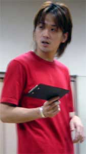 沢山の心配&お見舞いメールありがとうございました。 凄く嬉しかったです、本当に。 元気と癒しを貰いました! 一刻も早く完治させて、完璧の状態で本番に挑む事をお約束します。 実は公演の稽古中に風邪を引いたのは今回が初めてで、ちょっと焦ってます。 焦ってはいますが、人間ってこういう時凄いなって思いますね。 何故か不思議と芝居してたりダンスしてたりする時は集中しているせいか気にならないものなんです。 稽古場に入ると『ヤルゾ!』ってなるもんなんです。 不思議ですよ、ホントに。 けれど稽古が終わり帰る頃に、そのツケが一気に襲ってきます。 今までの公演の稽古の時の風邪対策は万全だったのに、久しぶりの舞台のせいで対策を忘れていたせいか、チィチィの尻を追っかけていた罰が当たったのかは定かではないですが、とにかく今は気力だけでやってる感じです。 稽古場って、バタバタ暴れるからホコリまみれだし、窓を開けると近所迷惑だから換気出来ないし、乾燥してるしで、風邪を引きやすい環境なんです。 一人が風邪を引くと一気に全員に感染します。 皆さんも風邪には気をつけましょうね。 てか今日の日記、テンション低くてすみません・・・ さて、『衣装パレード』がありました。 『衣装パレード』とは、先日提出した付帳を参考に、それぞれが衣装を用意し、演出家や出演者に披露して、似たような衣装がないかとか、キャラに合ってるかどうかチェックするモノです。 で、オイラの衣装、見てみます? それとも、本番までのお楽しみにします? 観てみたい方は こちらをクリックしてみて下さいね。 一応、付帳どおりに用意しました。 演出家のOKを頂いたので恐らく本番もこの衣装出る事になると思います。 付帳と違う部分は、メガネをかける事になったという事ですね。 最後に今日も稽古場風景を数枚御紹介して寝る事にします。。 撮影は森川君です。 ご協力ありがとぅ、森川君。